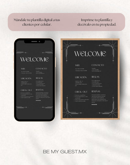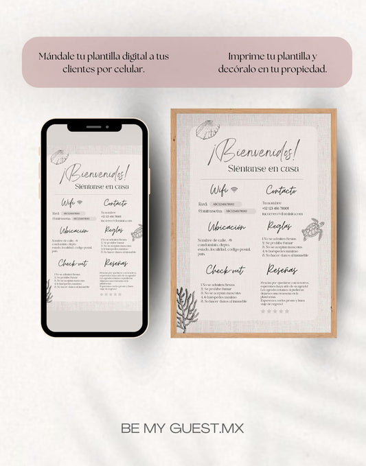 La presentación adecuada es clave en la experiencia de tus huéspedes. Desde detalles como el WiFi hasta las reglas de la casa. Nuestras plantillas editables están diseñadas para asegurar que tus clientes reciban una presentación profesional y completa incluso en sus dispositivos móviles.